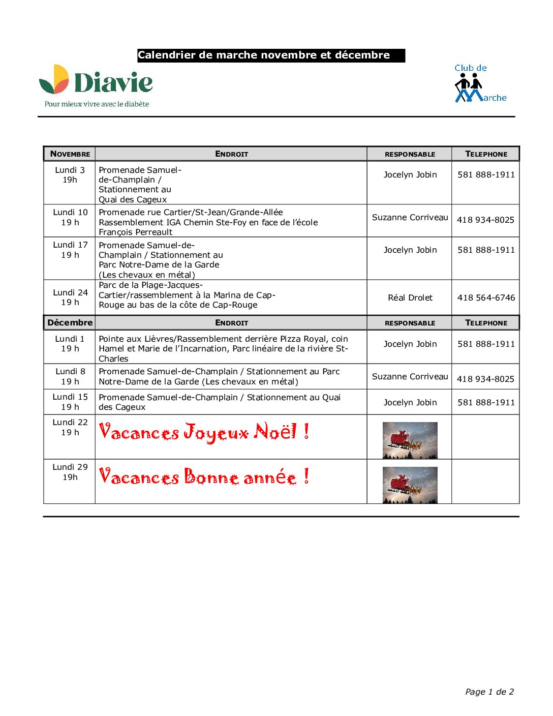 Les responsables du Club de marche prendront une pause du 22 décembre et 29 décembre 2025.